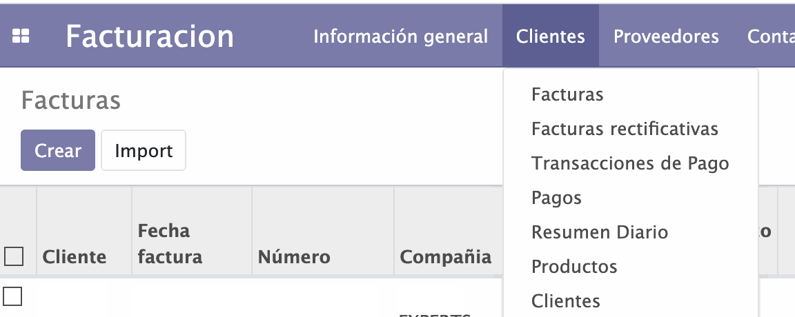 Para crear una nota de crédito antes seleccione una factura de origen en el menú "Cliente" -> "Facturas". Recuerde que para poder crear la nota, la factura de origen ya debe estar validada.