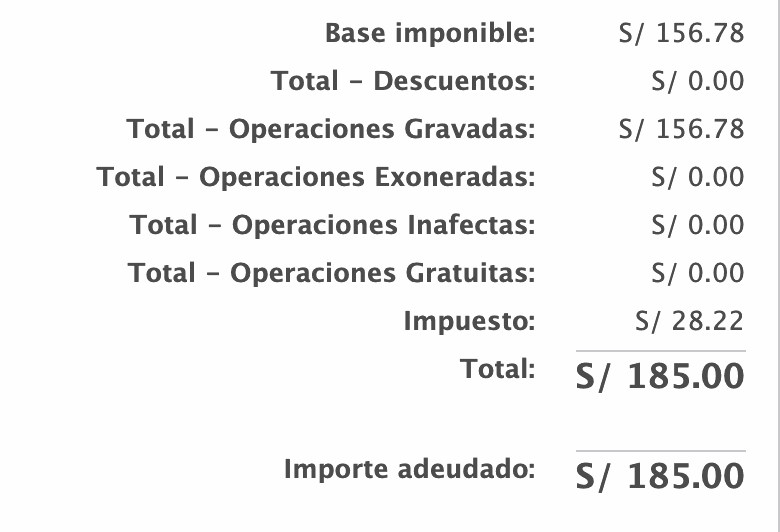 Finalmente, es posible observar que los pagos registrados ahora se muestran en el total de la factura, y el saldo a pagar o "Importe Adeudado" es actualizado.